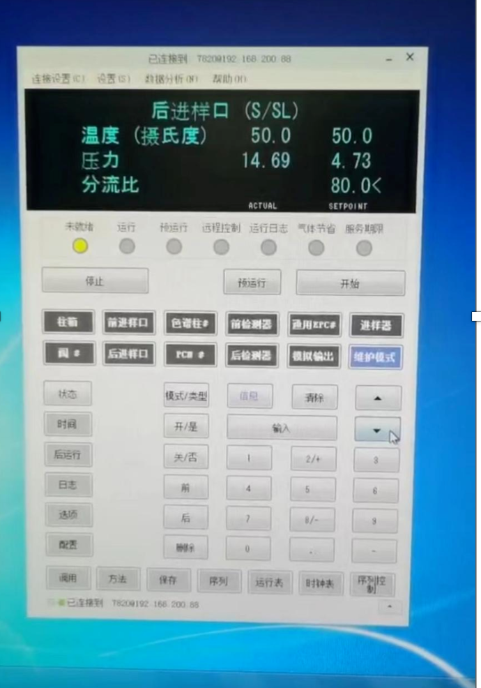 在现场,小吴发现,这种压力问题出现在分流模式下,将进样口模式切换到不分流模式,压力很快就恢复正常了。